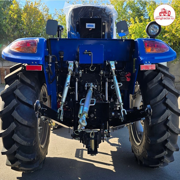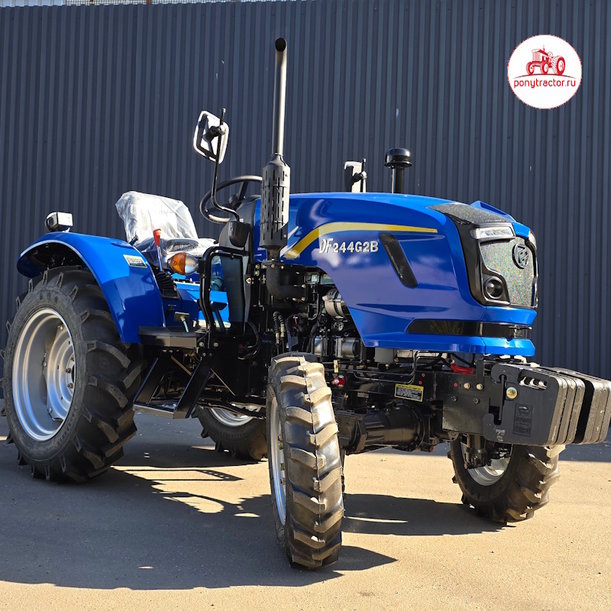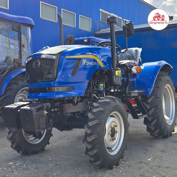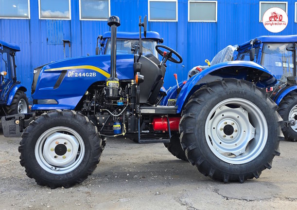 В базовой комплектации трактор Dongfeng DF-244 G2B без кабины и с реверсом синего цвета оснащается экономичным, четырехтактным, 3-х цилиндровым дизельным 24-ти сильным двигателем (ZN-390Т) жидкостного охлаждения, полноприводной (4х4) механической трансмиссией (с пониженным рядом и блокировкой заднего дифференциала), счетчиком моточасов. За функционирование гидравлической системы трактора Донг Фенг ДФ-244 G2B с кабиной c реверсом отвечает гидронасос, критическим давлением 14 МПа. Дополнительно в базовую комплектацию входит: двухскоростной задний вал отбора мощности (ВОМ) 540 / 1 000 об/мин., задняя 3-х точечная навеска, задний гидравлический распределитель с рычагом управления с 4-мя коннекторами (гидровыходами). Дополнительно можно до установить: фронтальные противовесы.